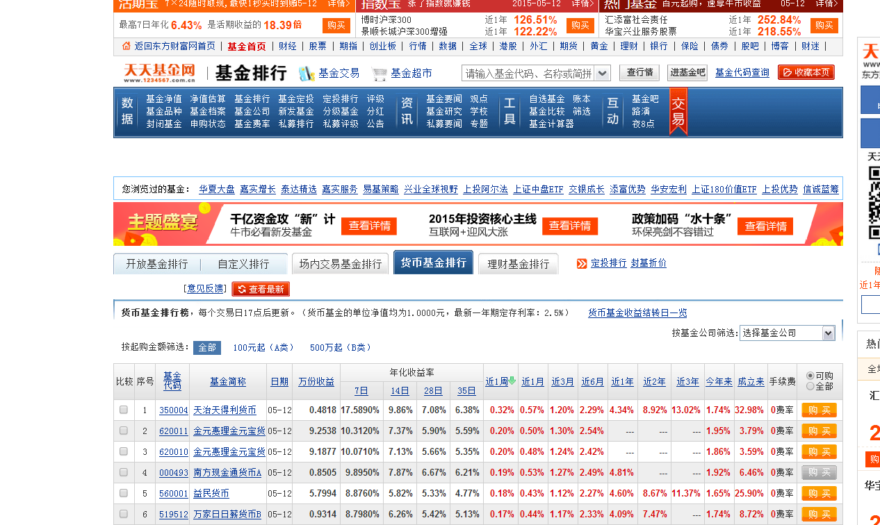 网络货币基金收益排行:http://fund.eastmoney.com/data/h ... ;ddesc;pn50;mg;os1;