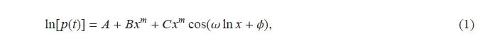 上式被称为对数周期性幂律(Log-periodic power-law ,L PPL)模型。注意上式中第二项和余弦函数项的乘项都是幂律形式。幂律增长(泡沫)或衰减(反泡沫)意味着价格的增长率不是常数,而是单调增大(泡沫)或减小(反泡沫)的。他们把这称为超指数(super-exponential)增长或衰减。另一个特点就是对数周期性振荡,在线性尺度下,越接近临界时间,振荡频率越快,但在对数尺度下,振荡频率为常数。式中需要确定7个参数:更详细的一般的形式: