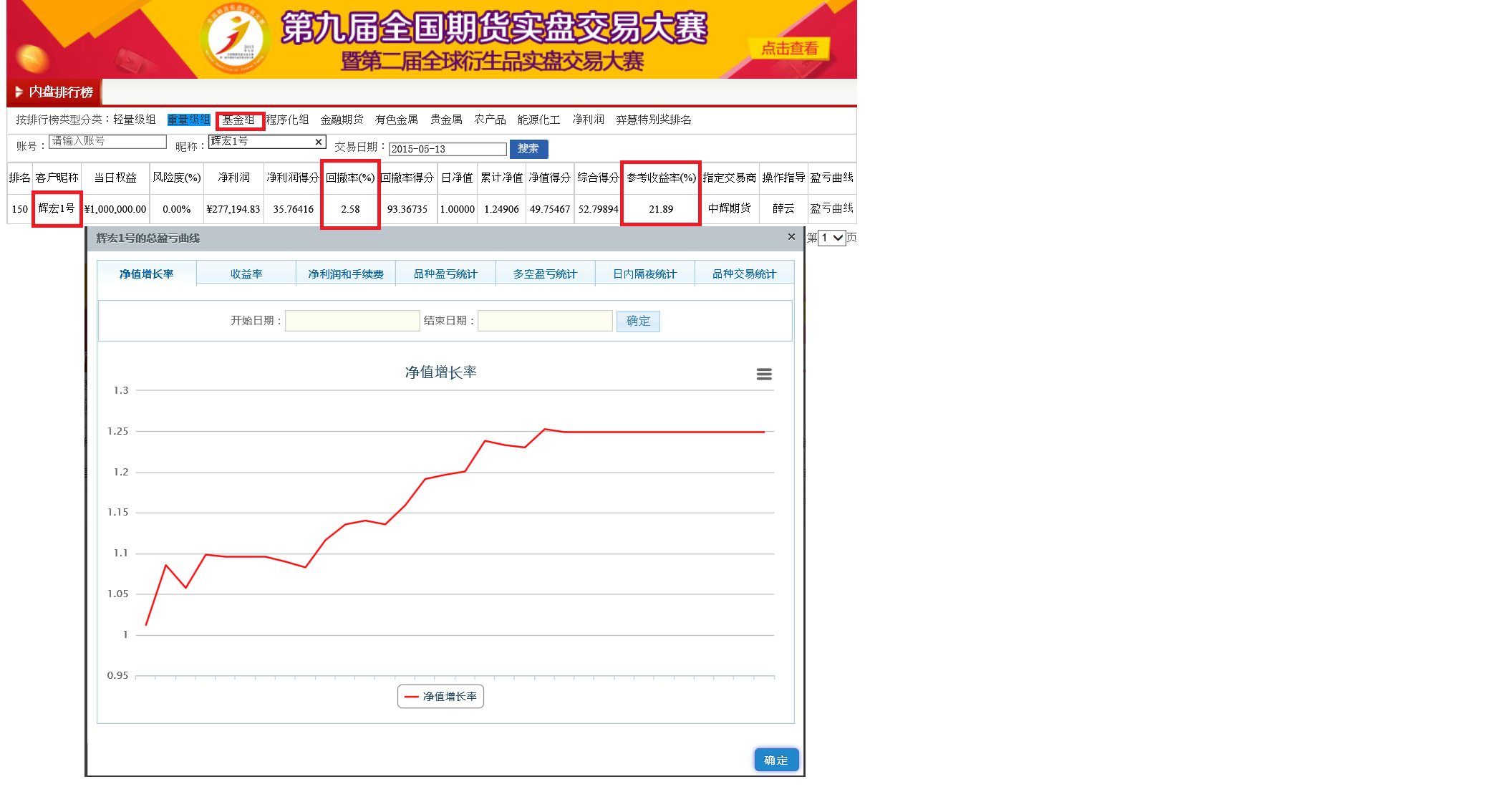 中国第九届全国期货实盘交易大赛 辉宏1号