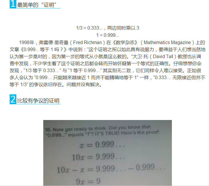 0.999... = 1 吗?此问题在国内外大大小小的网络社区里出现了无数多次,每次都能引来上百人激烈的争论,可谓是最经久不衰的老问题了。其实,在学术界里,这个问题也是出了名的争论热点。让我们来看看,数学家们都是怎么来看待这个问题的。