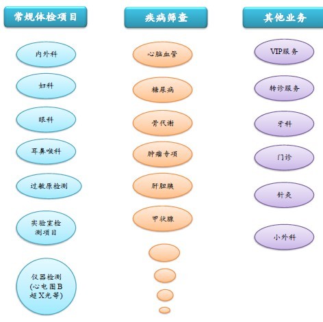 专业健康体检是蓝海市场,未来28%的行业复合增速及千亿市场容量,属于朝阳投资行业(当前100亿)。专业健康体检目前行业分散,借助资本的力量,龙头公司将充分受益行业集中度提升的机遇(当前4%)。未来体检内容的升级,将可能给行业带来量价齐升的发展机遇(ARPU提升)。专业体检具有大健康产业入口的潜力,未来行业将向健康管理、大数据等业态延伸,构建更高附加值的行业生态体系。