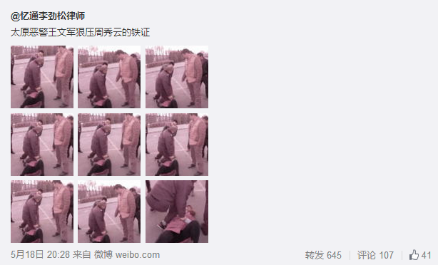 李劲松律师铁证;对此,周秀云之子王奎林委托的被害人诉讼代理人李劲松律师于昨日20:28分发布视频截图,公布王文军狠压周秀云铁证。