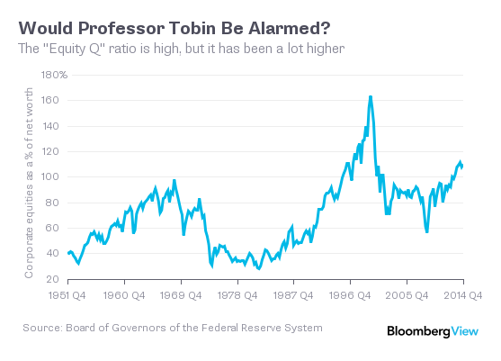 彭博社的卢-旺(Lu Wang)和杰尼夫-卡普兰(Jennifer Kaplan)指出,目前美国企业的Q比率要比此前互联网泡沫时代以及1929年大萧条时期的峰值还要高。