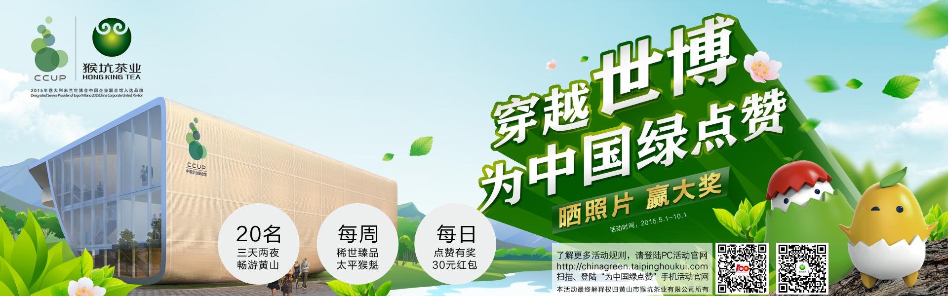 活动于2015年5月1日开始,截止时间为2015年10月1日。此次活动以“随手拍,晒照片,赢大奖”的形式进行。活动期间,点赞榜(20人)-送3天2夜免费黄山游;每周点赞人气奖(3人)-送正宗太平猴魁米兰世博纪念款;点赞就有奖-送30元红包代金券。