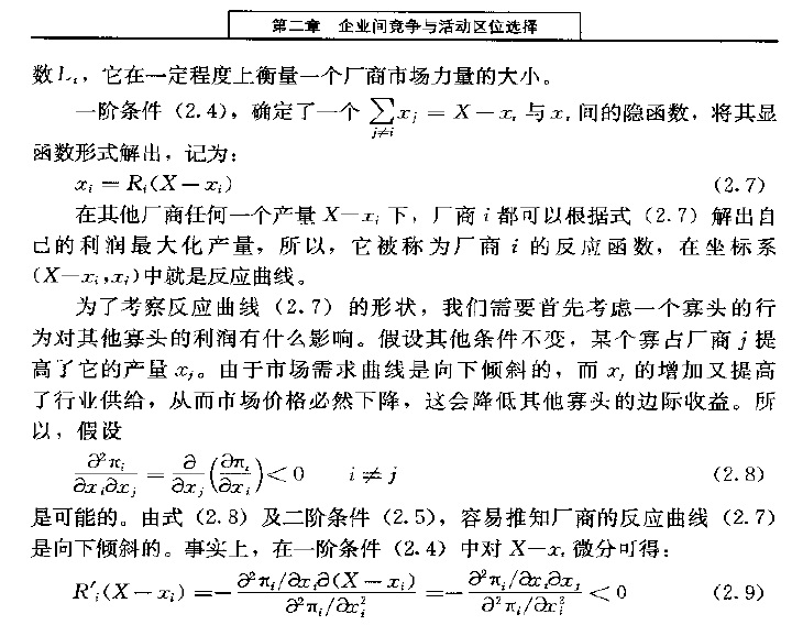 请教:安虎森《区域经济学》2004版,古诺纳什均衡公式推导问题