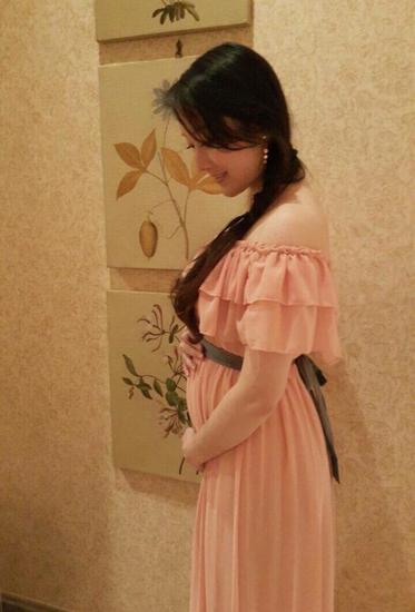 5月22日早晨,歌手许慧欣在微博晒出一张孕妇照,照片中他身穿粉色纱裙,双手捧着微微隆起的小腹,低着头看起来非常小心的样子。她不无兴奋地说:“小肚子这个月出现了!早上好像会小一点但到晚上尤其吃晚饭后明显看到小孕妇肚子了!这些是2-3周前拍的,我妹妹回德州一起参加她最好朋友的婚礼。还带了1.5箱子的baby的东西给我。”