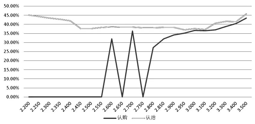 期权隐含波动率较之前回升不少。6月认购期权波动率在32.04%—43.38%之间,6月认沽期权隐含波动率在36.98%—45.82%。5月合约临近行权日,深度虚值认购期权卖方等待行权日合约时效。相反,随着近日50ETF现货价格探底反弹,投机者看准期权的杠杆效应,大幅买入6月虚值认购期权,使得6月期权合约的隐含波动率较前几日有明显回升。但是,随着5月合约到期,空方力量将向6月合约转移,隐含波动率下降概率较大。预计隐含波动率将维持在高位,甚至进一步上升。待下降趋势确定,投资者可以采取做空波动率策略,或者卖出当月深度虚值的期权合约。