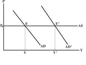 凯恩斯主义总供给曲线是一条水平的总供给曲线,这表明,在既定的价格水平时,厂商愿意供给社会所需求的任何数量产品.从图中可以看出,此时总供给曲线AS是一条水平线.水平的总供给曲线表明,在现行的价格水平下,企业愿意供给任何有需求的产品数量.
