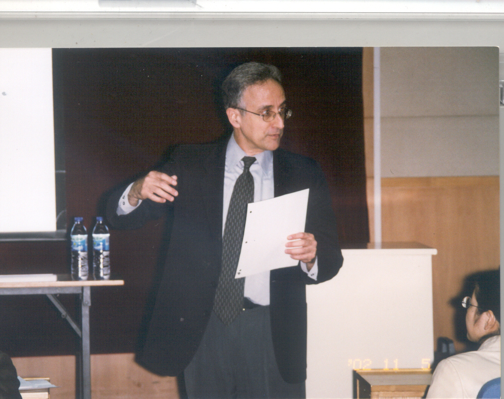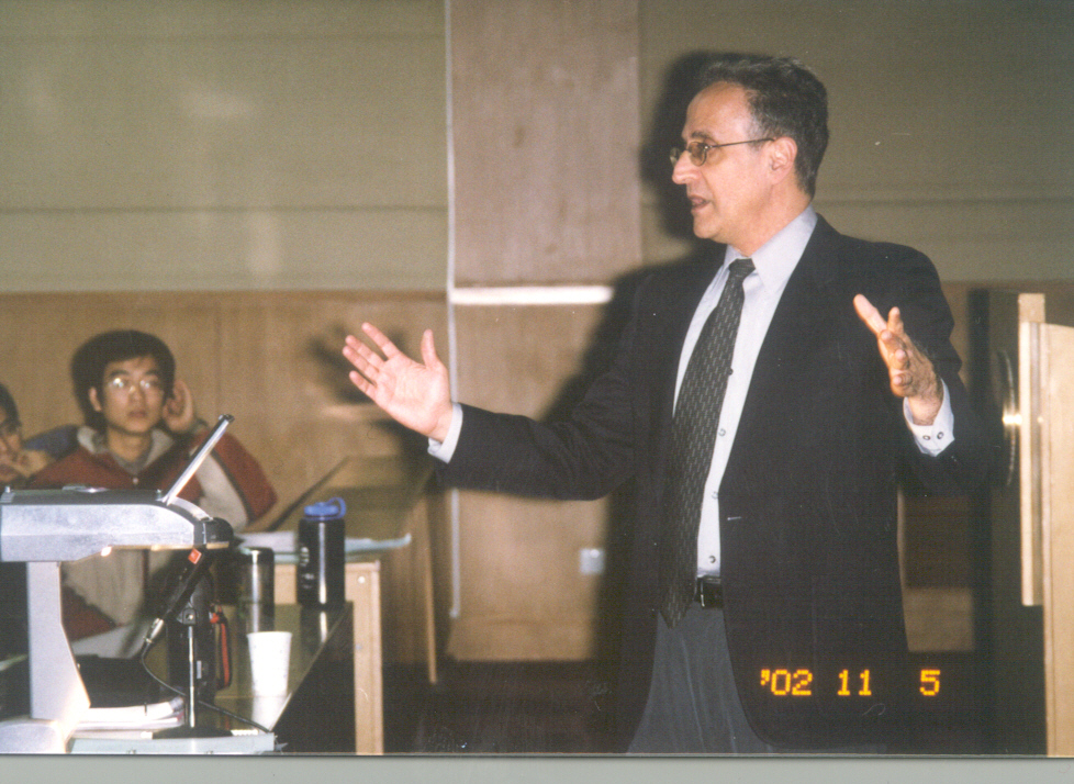 附上他2002年11月5日来北京大学光华管理学院讲演的照片。从他的神采,很难想象他当时已经74岁,而且经受了多年的疾病折磨。