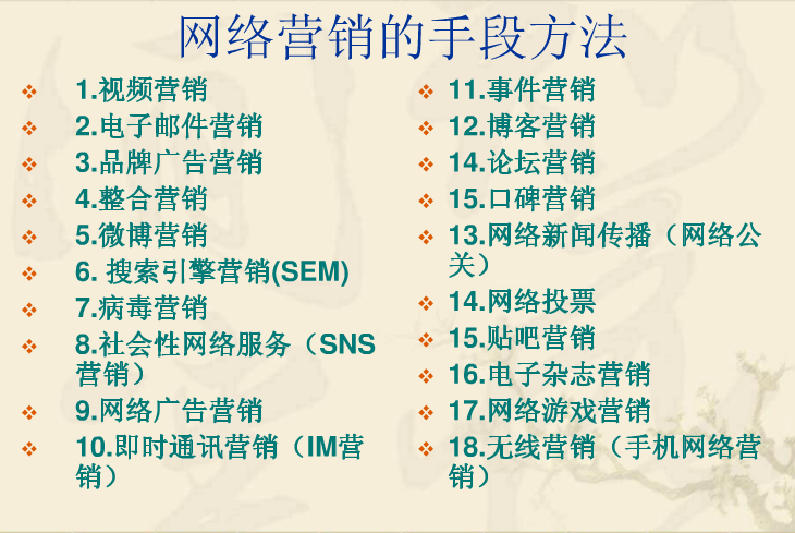 网络营销(On-line Marketing或E-Marketing)就是以国际互联网络为基础,利用数字化的信息和网络媒体的交础,利用数字化的信息和网络媒体的交互性来辅助营销目标实现的一种新型的市场营销方式。简单的说,网络营销就是以互联网为主要手段进行的,为达到一定营销目的的营销活动。