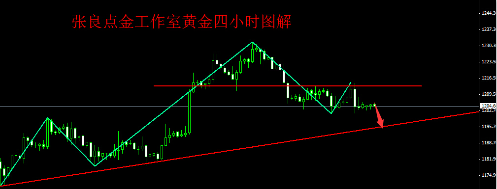 白盘震荡窄幅上扬,这是下跌的前兆,空单只需耐心持有即可!维持早间看跌思路,下方目标看至四小时趋势支撑位1194不变!