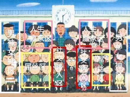有最好的“风水宝地”,也有最差的“洼地”,那就是“屌丝区”,这区域位于“社交达人区”和“男神女神区”中间,他称站这里的同学不显眼,是为了烘托红花的绿叶。