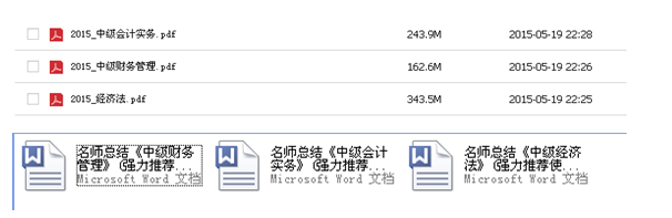 以及名师总结的《中级财务管理》《中级会计实务》《中级经济法》三个文档。总结得非常精辟读到。迅速提高你的水平!需要的童鞋请留下你的邮箱,届时统一发送。