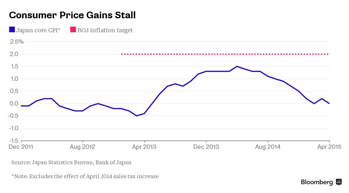 图一:自2013年日本央行开始实行刺激计划,日本GDP已增长5%(彭博社)