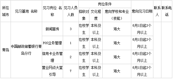 二、共青团“青年就业创业见习基地”岗位要求