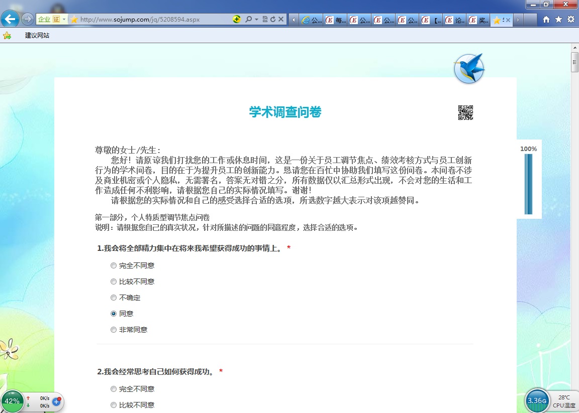 问卷已填,请查收。祝楼主的研究一切顺利!