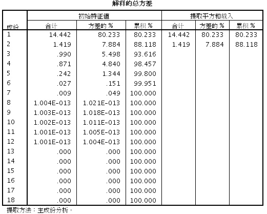 只有前两个特征值大于1,所以只选择前两个主成分。第一主成分的方差贡献率是80.233%,前两个主成分的方差占所有主成分方差的88.118%。由此可见,前两个主成分足够替代原来的变量。