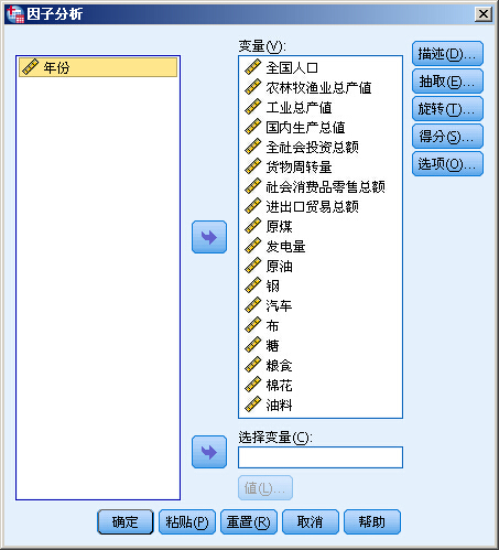 近年过年经济主要指标:全国人口 农林牧渔业总产值 工业总产值 国内生产总值 全社会投资总额 货物周转量 社会消费品零售总额 进出口贸易总额 原煤 发电量 原油 钢 汽车 布 糖 粮食 棉花 油料,分析主成分与指标间的表达式