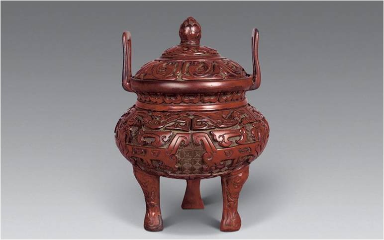 鼎形香炉,其实脚已经不需要做那么高,但却保留了它原始灵感来源的形态。