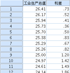 (1)新序列名称“工业生产总值_1”,该序列三个缺失值,有效个案587个,平稳处理的方法是DIFF,即季节差分方法。