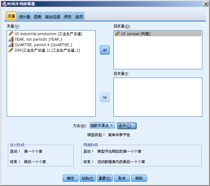 预处理是指定义时间序列和对时间序列平稳化处理。他是进行时间序列分析前必须进行的一个环节,因为SPSS无法自动识别时间序列数据并且在处理的过程中必须明确考虑时间序列的非平稳性。