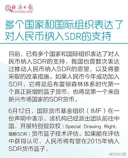 IMF日前对中国开展特别提款权(SDR)货币篮子技术评估。如果能在评估中获得认可,人民币将有可能在2015年纳入SDR货币篮子。你知道什么是SDR吗?SDR的交易方式有哪些?人民币纳入SDR有哪些好处?