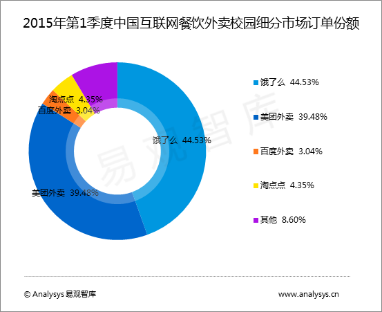 易观分析认为,针对校园外卖细分市场,饿了么和美团外卖的双寡头竞争局面会保持一段时间,二者之间的竞争仍然会非常激烈。