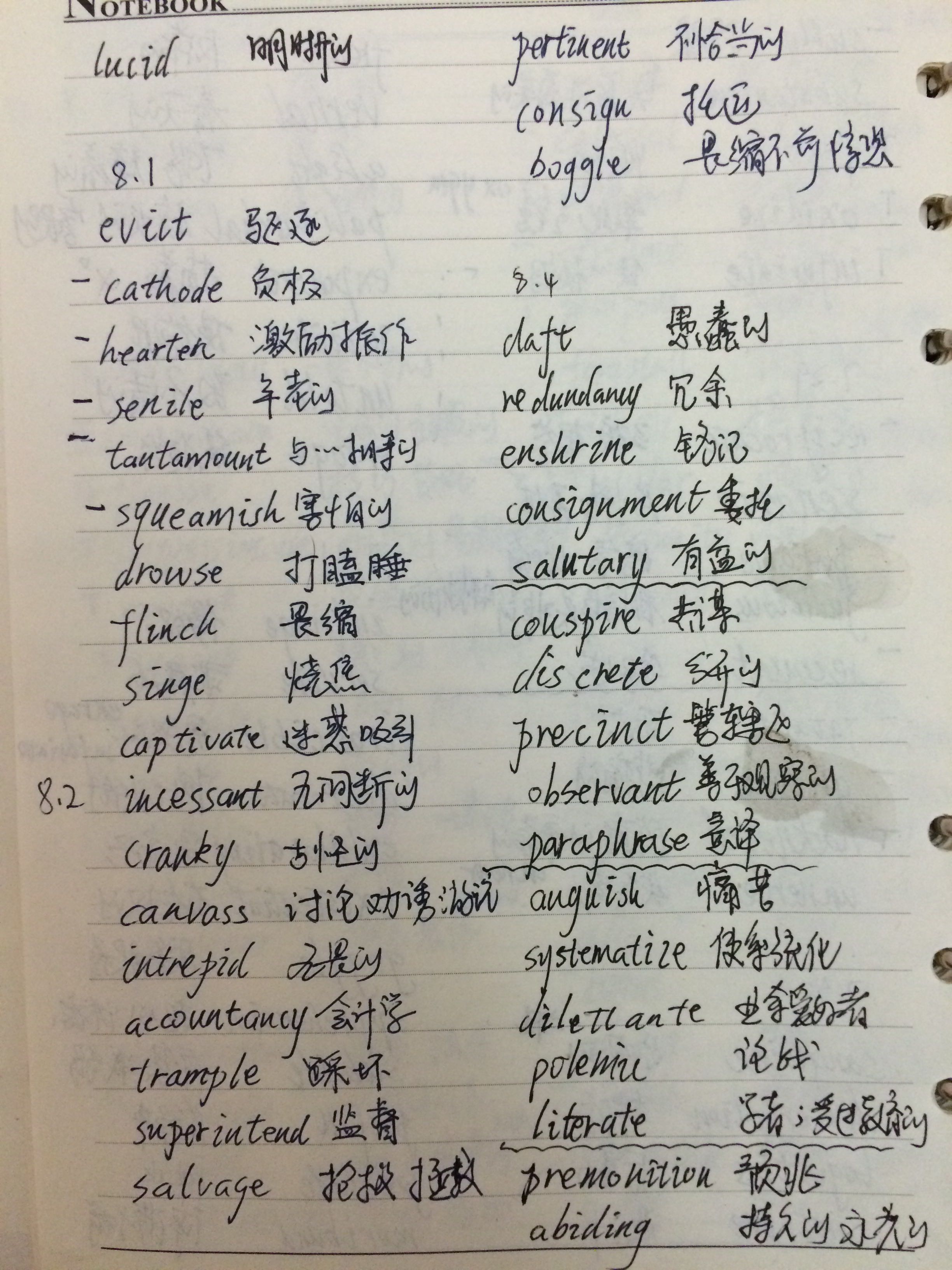 8.17:斩58。速记一个词:tacitirn沉默寡言的,taci(taxi) turn转弯,出租车转弯很少打灯,沉默寡言的