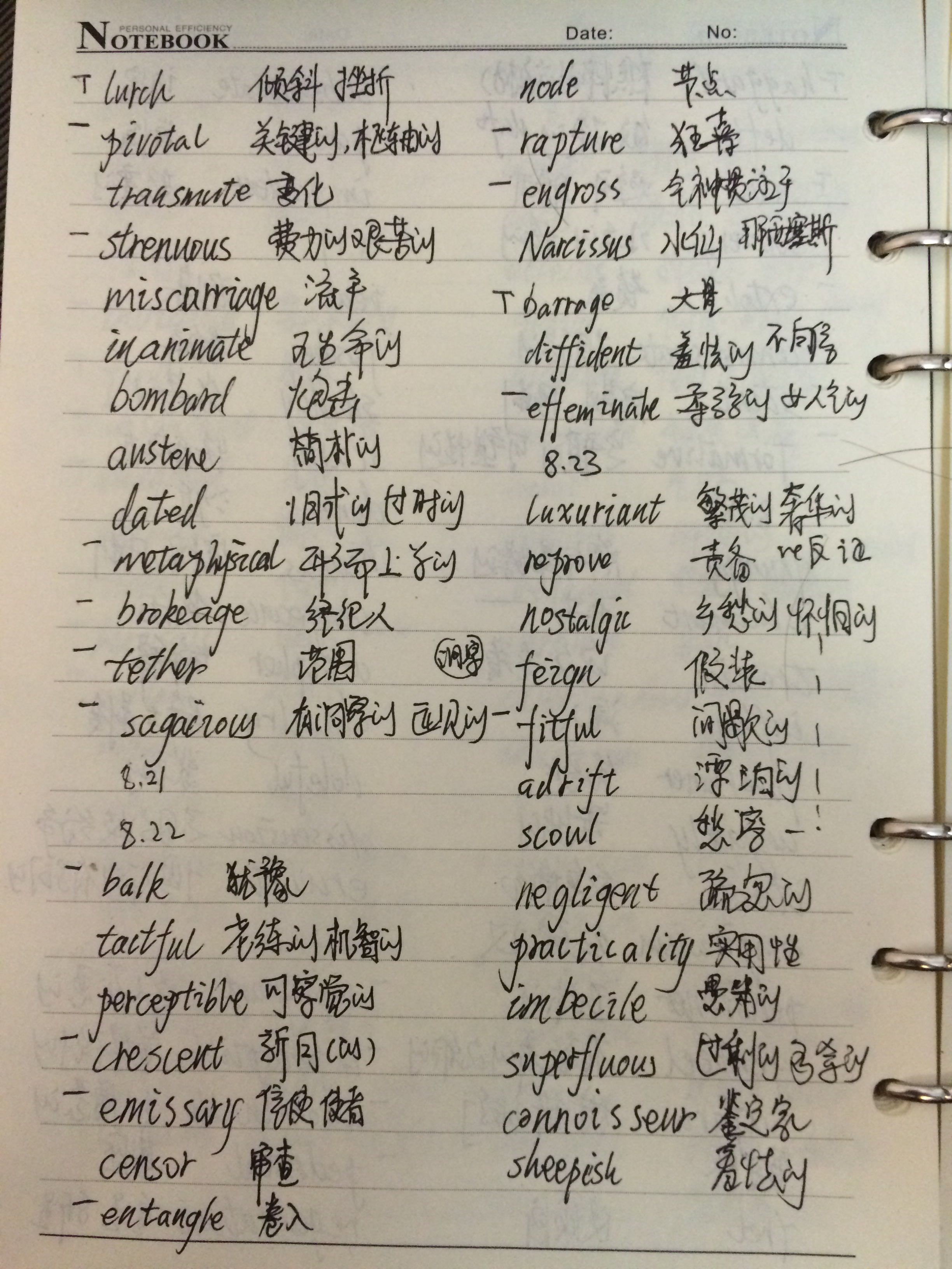 8.22:斩55。速记一个词:effeminate女人气的,ef衣服,feminate女性的,装束打扮的像女人,女人气的。