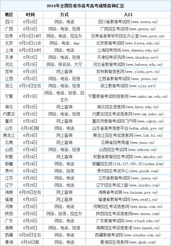 从6.23起,一大波成绩开始公布,共计10个省份:北京、上海、天津、河北、吉林、江西、浙江、宁夏、湖北、内蒙古。