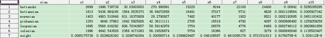 我想通过n个不同的县的n个指标,分别乘以weight(也就是权重),最后在求和