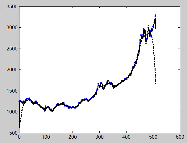 >> output5 = smoothts(price,'e',30); % 用指数法平滑数据,窗宽为30
