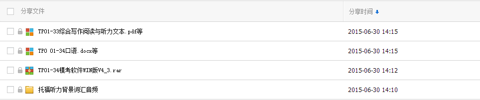 TPO所有的听力音频文件可以拷贝到手机上,随时随地地听,熟悉英语环境。我目前就是根据自己的需求将音频文件分类地生成不同的播放列表,从而方便练习和熟悉。比如分别将对话、讲座设置成两个播放列表,这样就可以集中分别进行练习。帖子所有材料都可以从网上找到,在复习的前期我拼命地下载,发现很多都是重复的东西,我于是根据自己的理解进行合并删减,并添加一些自己的内容(如口语样例)。