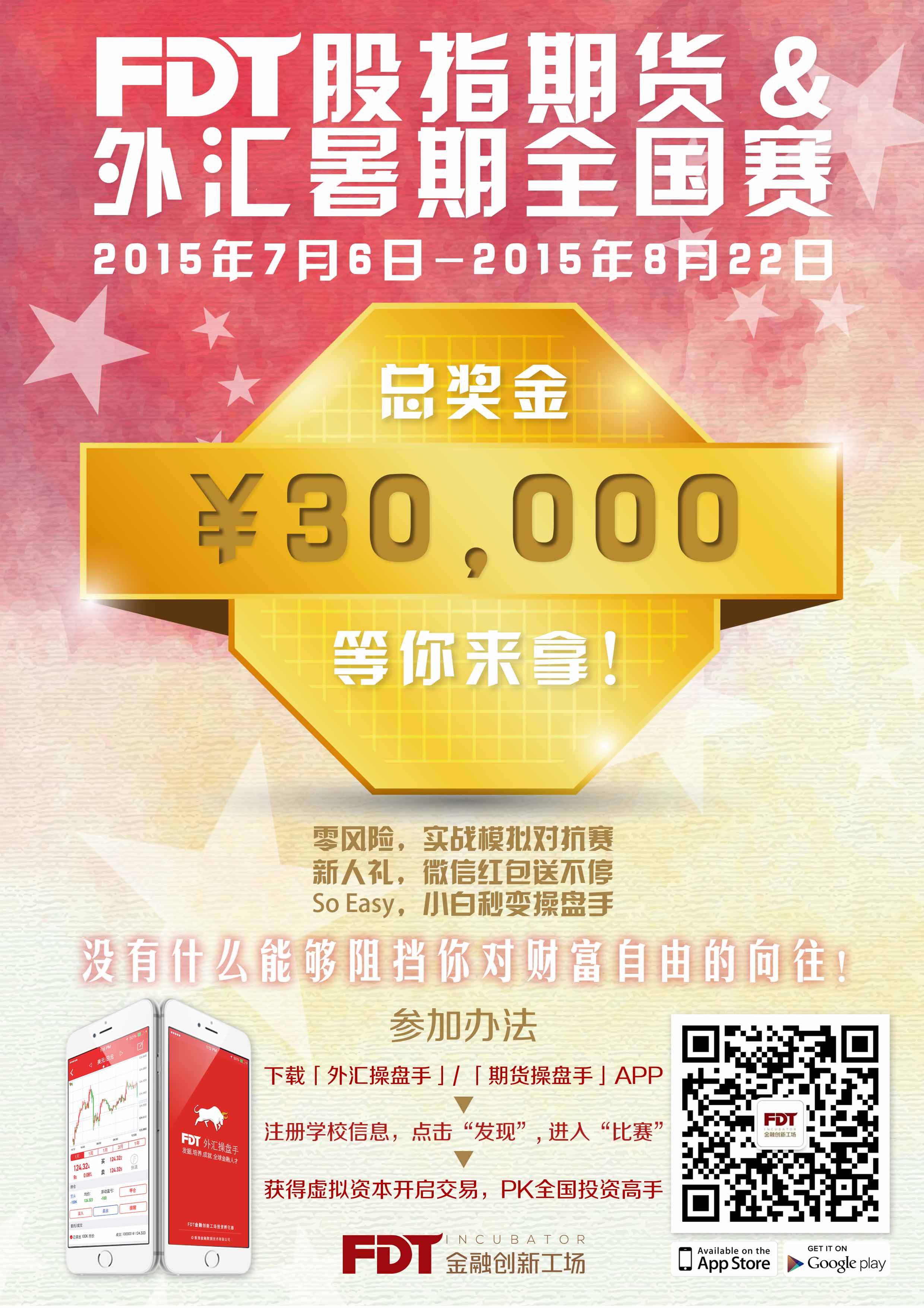 寻!校园里的投资新军,百万美元,等你来战!不管你是一窍不通的小白,还是初出茅庐的鲜肉;不管你是冒险型短线高手,还是稳健型交易专家,这个夏天,都有机会在 FDT金融创新工场暑期全国赛上顺利“掘金 ”。30000总奖金,冠军大奖最新款apple watch等着你。激发你的交易天赋和热情,开启你的金融新时代,赢亿元种子基金,开启你的基金经理之路!