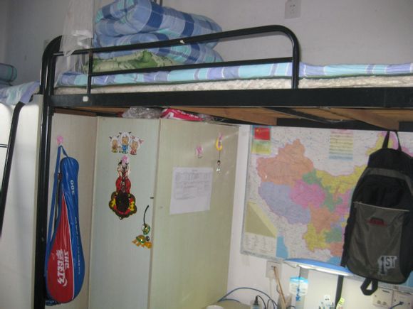 我在主校区的 就介绍一下主校区的情况吧 宿舍一般是4或6人间的 面积不算大,但够你住的了 每个人有一张床(只有上铺),床下面是电脑桌和衣柜鞋柜,宿舍里还有一个几人合用的大厨和洗脸池、洗衣池等,带网口 不过得向学院申请之后才能开通使用的(一年级学院抓的紧,基本不会让你开的,而且搞不好还要天天抓晚自习) 开通之后每个月有20小时的免费上网时间 不过网速么就崩指望了,带独立卫生间和洗澡间(有淋浴喷头 定时供应热水) 没有电风扇空调(得自己购置)