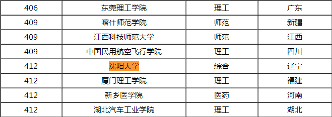 沈阳大学2015年位列412名,相较于2014年(点击这里查看2014中国大学排名完整榜单)的排行第370名,排名下降了42位。