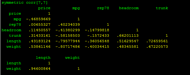 此代码用来计算变量1、变量2…之间的相关系数矩阵。