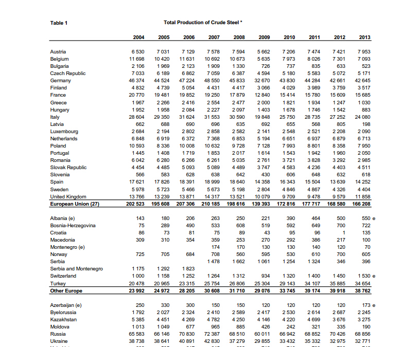 这个来自World steel association, 可以免费下载的 http://www.worldsteel.org/statistics/statistics-archive/yearbook-archive.html