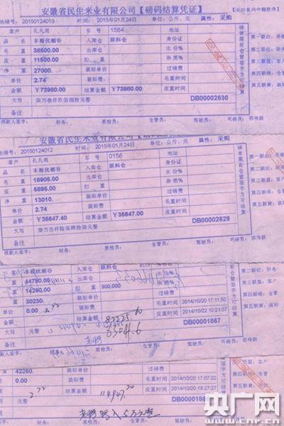 但在调查中,记者发现中储粮开具的票据中,混杂着民生米业开出的验粮结算单。刘师傅曾是民生米业的工人,他告诉记者,如果不是中储粮去年来挂牌收粮,他不会把粮食拉到这里来,因为2013年,他的粮食收购款,民生米业就没有兑付。