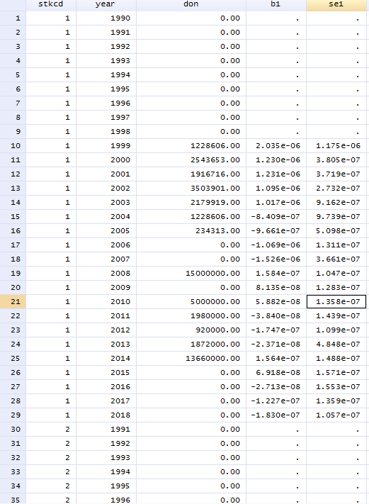 if inrange(Year_order, `i'-4, `i'), by(Stkcd) g(e)