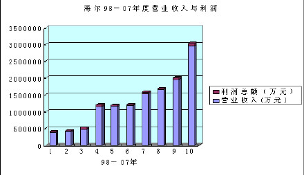 海尔国际化进程的加深可看作是海尔内部化的一个过程,在此以后随着海尔内部化的加深,其收受额和利润额也都大大的提高。从柱状图中可以清楚的看出海尔在99年开始大力推进国际化进程,实行内部化的过程中营业收入和利润总额都有了显著的增加,可见内部化的收益是很大的。