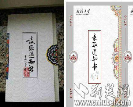 武大通知书被质疑抄袭人大_武汉大学录取通知书
