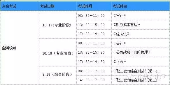 参考往年预测2015年注会考试具体时间安排表为: