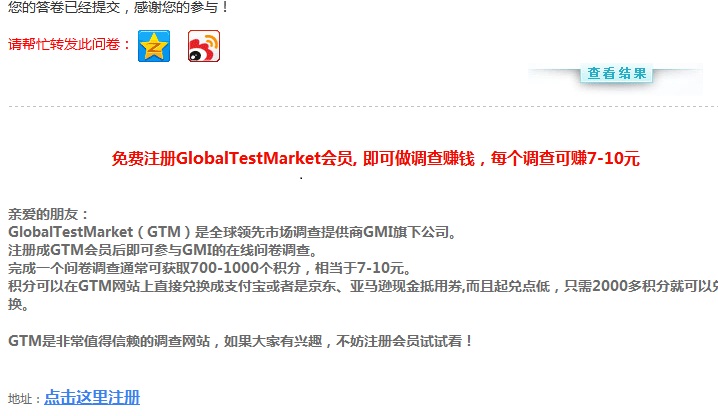 125520024 发表于 2015-7-30 02:52 已填写问卷,时间在30日2点50分左右,花时为1分钟左右。谢谢楼主