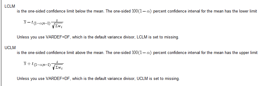 因为程序需要从SAS转码至SQL,目前对于一组数值,像means、std都有现成函数,不过LCLM和UCLM好像就不知道咋算了。