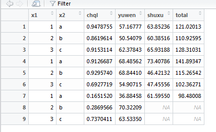 我尝试将两个数据框横向合并,可是相同的记录却重复了,说不清楚,请看图吧:第一个数据框 xf 和 第二个数据框 xg