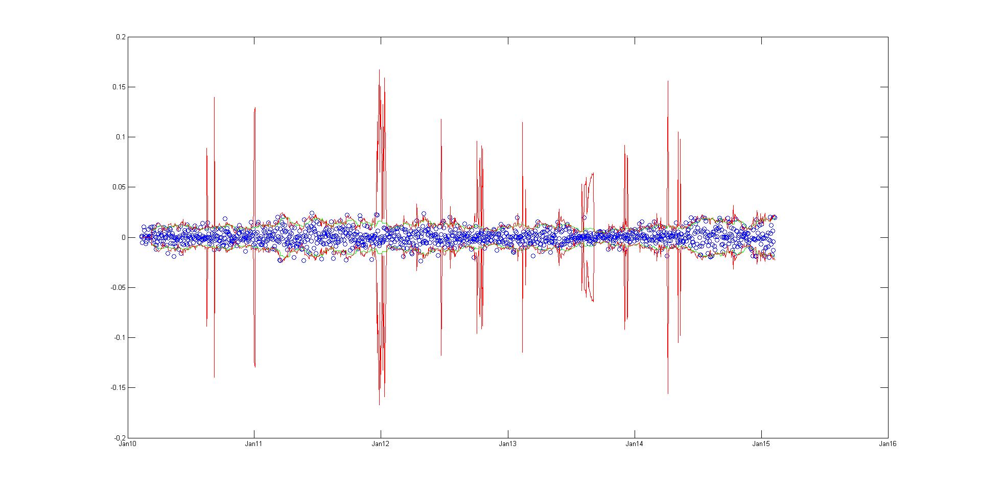 有熟悉 TGARCH 预测 volatility 的么, 我用 MFEtoolbox Tarch(1,0,1,'STUDENTST') 预测。 得到的数据变化非常大,matlab 也有 warning: matrix close to singluar .