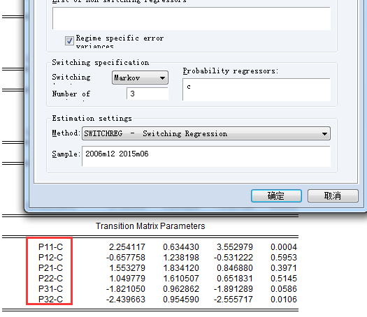 jinzheng_allen 发表于 2015-8-14 21:44 各位大神,做了一个三区制的markov switching 模型,有一个回归结果看不懂,请教各位大神如何理解转移矩阵? ...