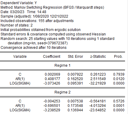 简若星 发表于 2017-12-3 18:13 你好,楼主。你用的是扰动项的方差随机制的变化而变化,请问每个区制的扰动项的方差的结果在哪。