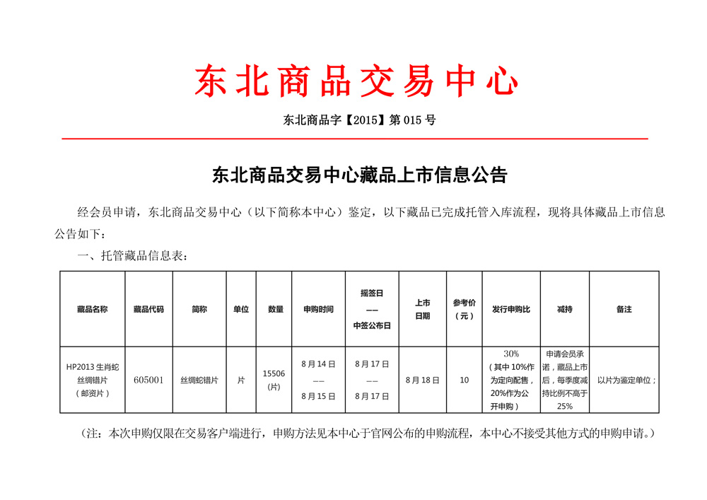 东北商品交易中心关于邮资片的公告